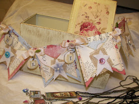 I used small squares of burlap for the center, and layered on a white felt star and then decorated each one with some sort of glitz. The banner itself is from