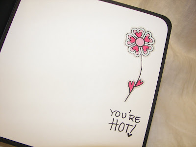 Another set of monogrammed cards! Gee, I wonder who had a snow day this week and extra creative time? I chose to use designer paper entitled Perfect Day by CTMH, for my perfect snow day project. The colors are g-o-r-g-e-o-u-s. I had no problem finding a matching floral stamp and copics to color-coordinate the envelopes.